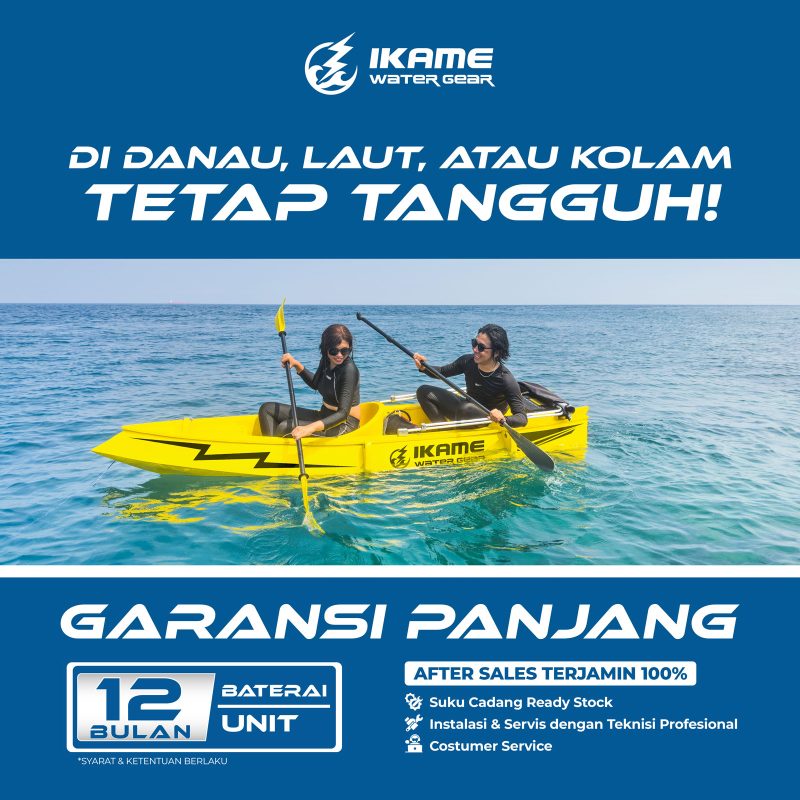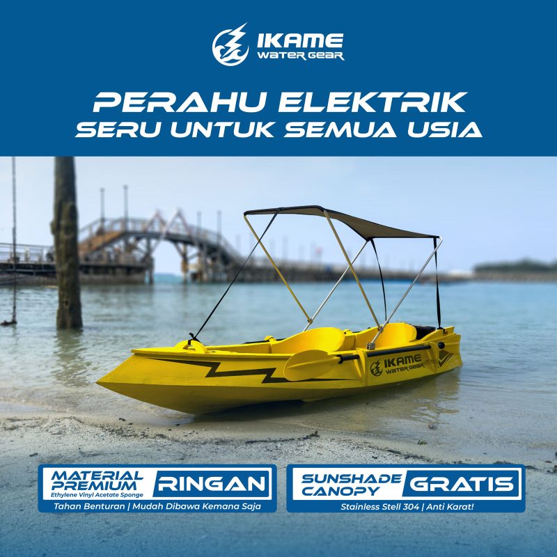 Perahu Spons Elektrik IKAME dibuat dari material premium Ethylene Vinyl Acetate Sponge yang kuat namun ringan, dilengkapi remote control, dan fitur emergency stop untuk keamanan ekstra.